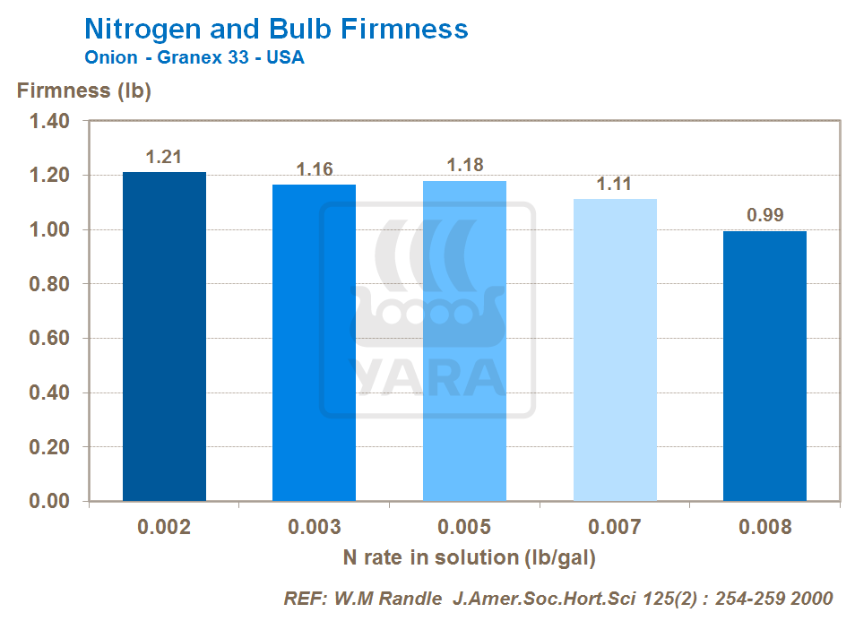 Azotul joacă un rol important în duritatea cepei. Ca şi rezultat al lipsei de potasiu și calciu bulbul de ceapă va fi ma puţin dens.