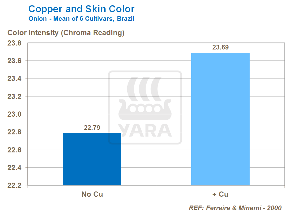 Nivelul adecvat de cupru este important în dezvoltarea cepei şi a cojii de ceapă, deoarece acest element joacă un rol important în producţia de lignină. Experimentele arată că cuprul este capabil de a îmbunătăți culoarea cojii.