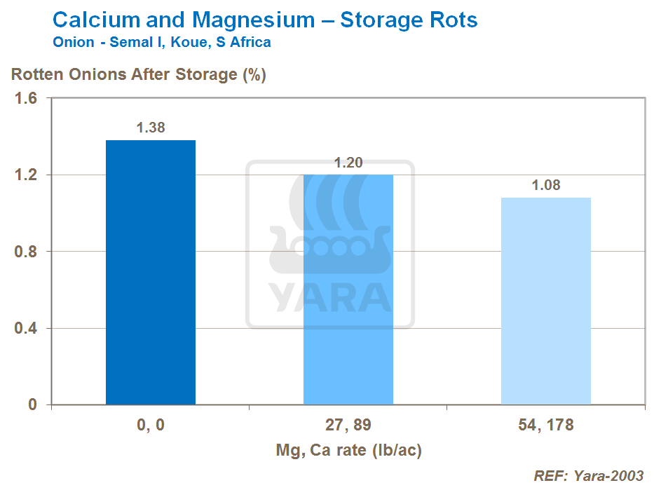 Calciul îmbunătățește rezistența la boli. În cazul în care bulbul dispune de un nivel ridicat de calciu, şi este corespunzătoare şi alimentarea de magneziu, riscul putrezirii în timpul depozitării va scade.