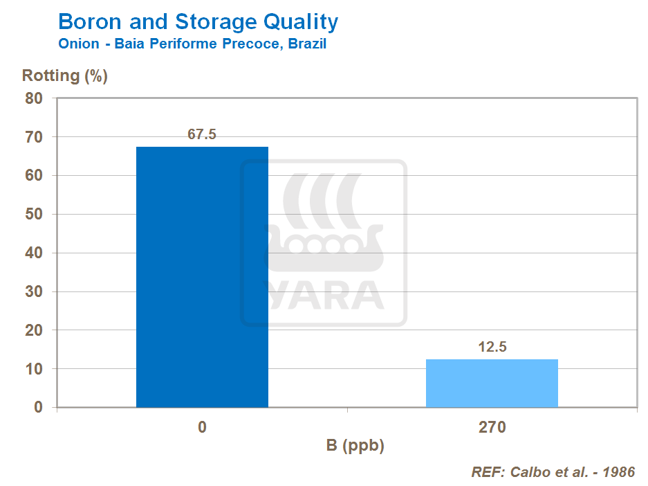 Borul ajută în îmbunătăţirea absorbţiei calciului şi a calităţii cepei. Experimentele au dovedit faptul că suplimentarea borului reduce riscul apariţiei putregaiului în timpul depozitării cepei. Acest efect se datorează faptului că acest micronutrient joacă un rol important în acumularea calciului în bulb.