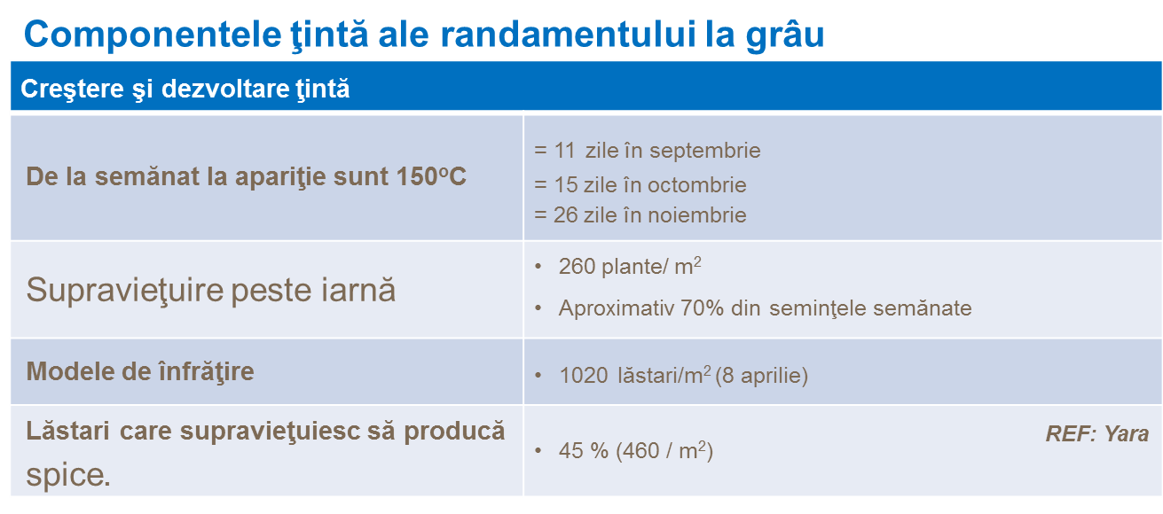 În funcţie de rezervele/fertilitatea solului, poate fi nevoie de azot şi fosfat în vederea constituirii unei populaţii de plante sănătoase şi viguroase în cele trei luni următoare semănatului. Aceşti nutrienţi pot fi amplasaţi în patul germinativ sau distribuiţi după semănat. În această perioadă culturile trebuie monitorizate pentru deficienţele de micronutrienţi, cu atenţie specială la mangan şi zinc.