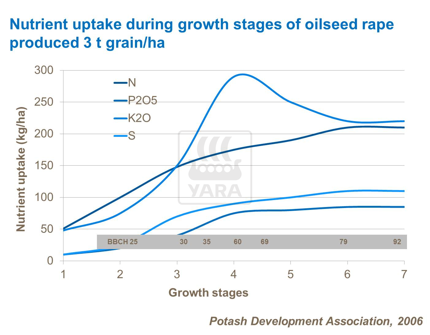 Date privind absorbția nutrienților de rapiță în timpul fazelor de creștere și la recoltare este un instrument important pentru a sprijini decizia privind rata și timpul de aplicare a nutrienților.